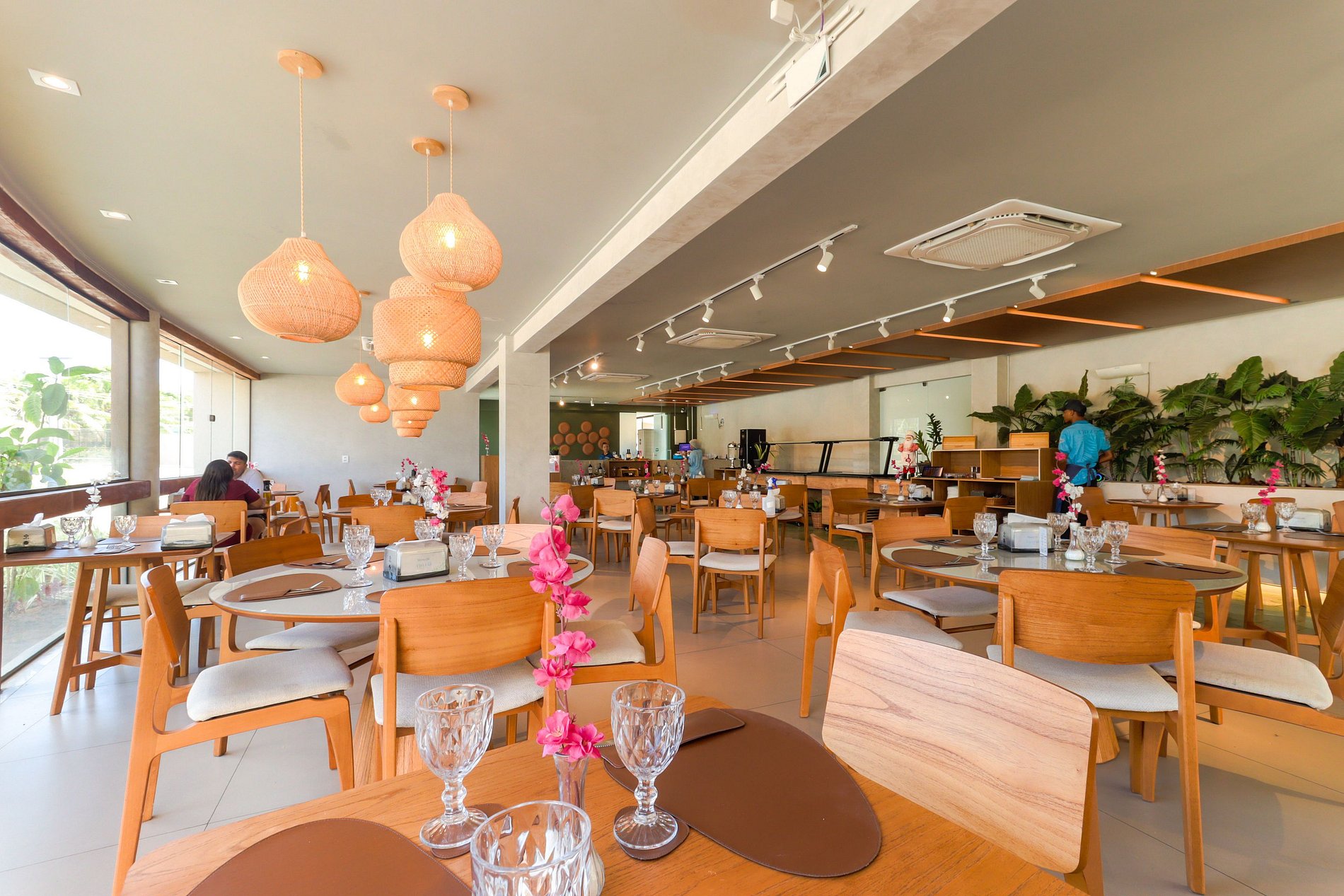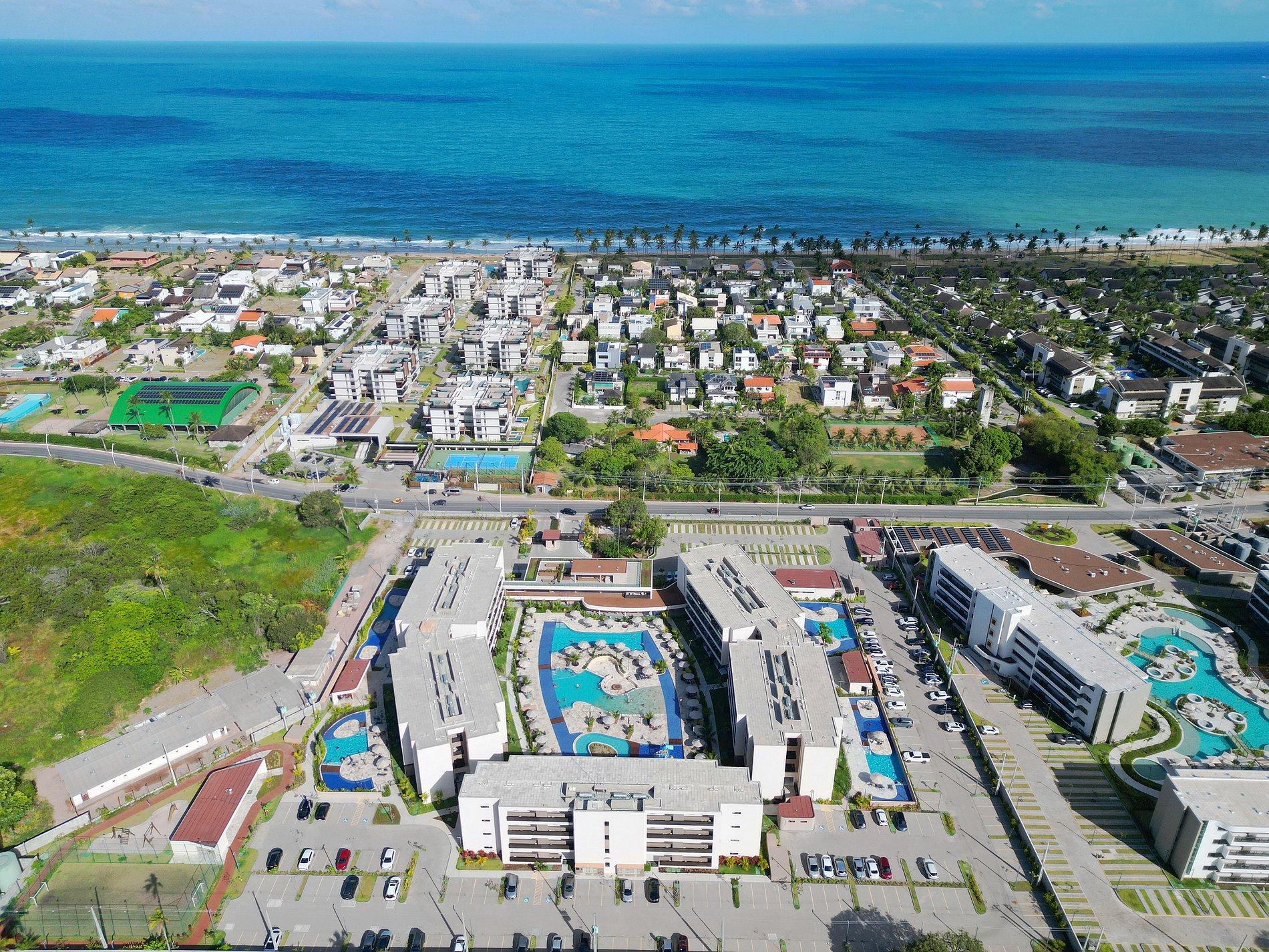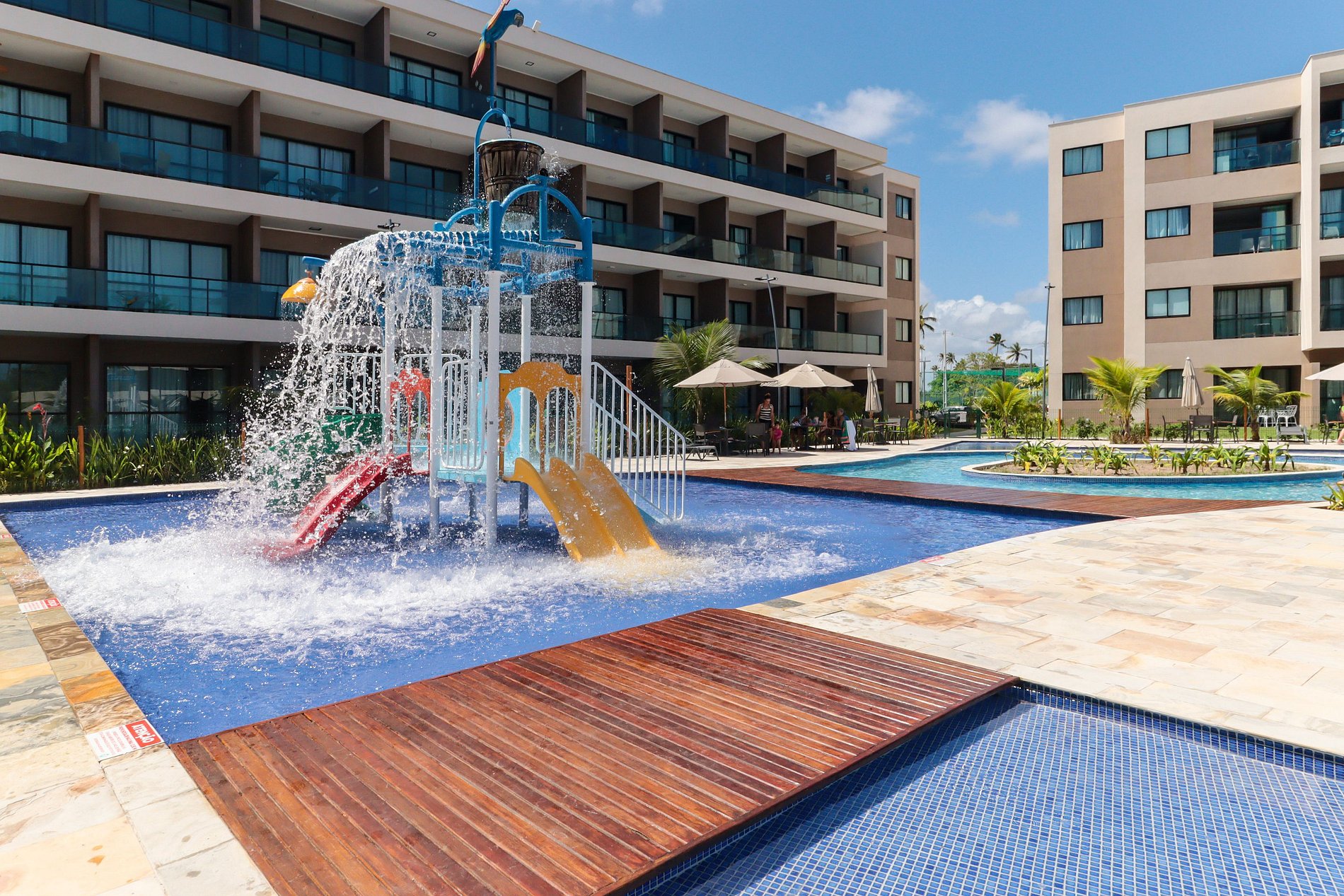 O resort conta com rooftop com vista deslumbrante, fireplace, piscinas, parque aquático infantil, espaços de lazer, academia e restaurante.