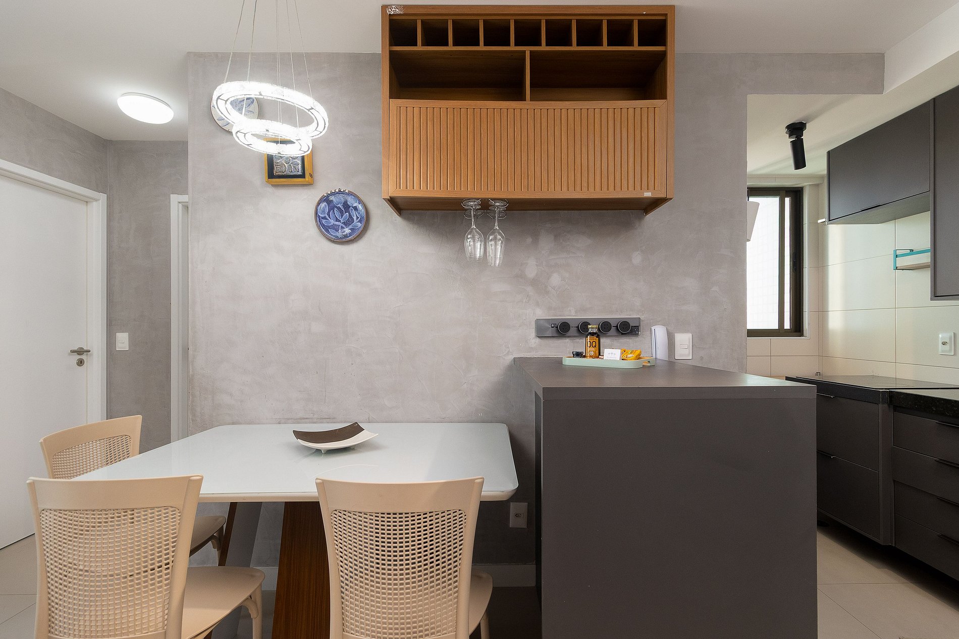 Cozinha completa com cooktop, geladeira e eletrodomésticos