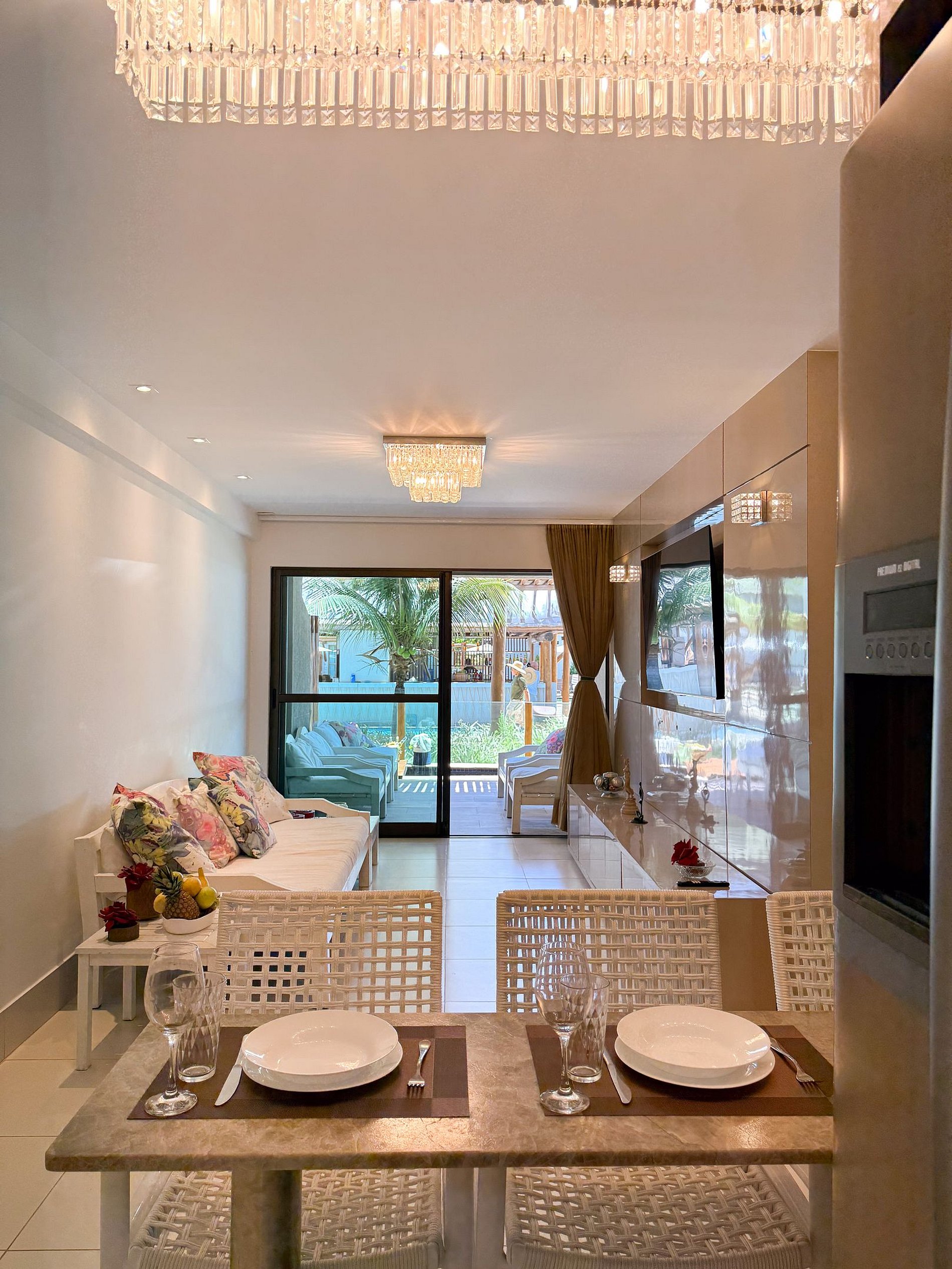 Nosso luxuoso flat na praia de Muro Alto é completo e perfeito para uma estadia inesquecível.