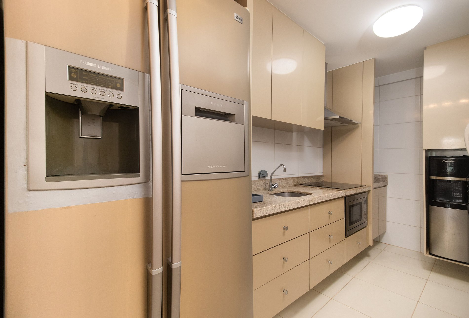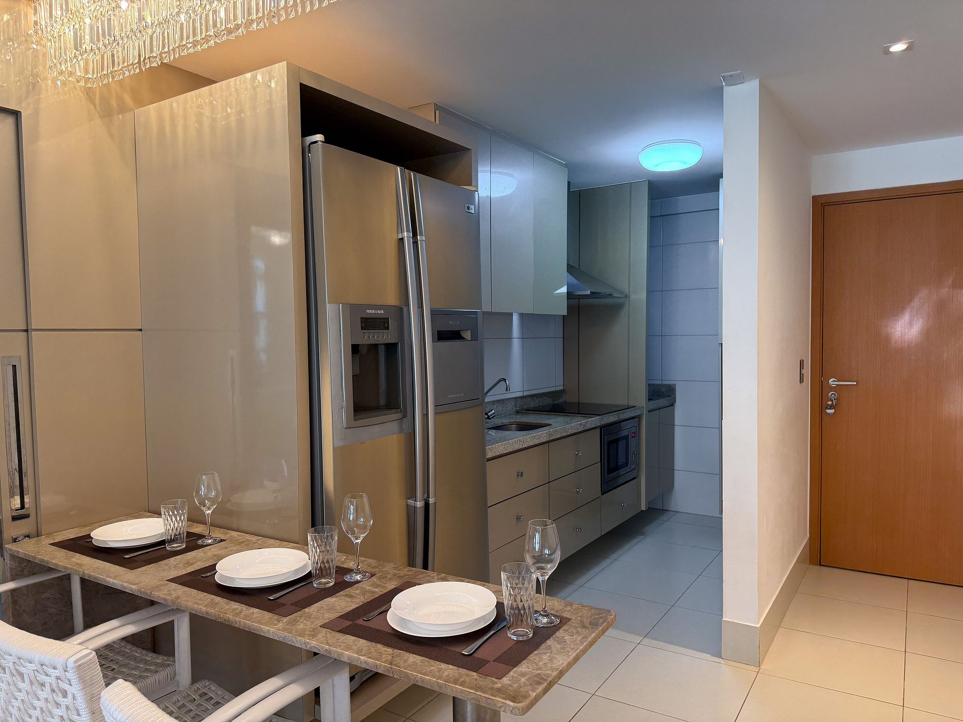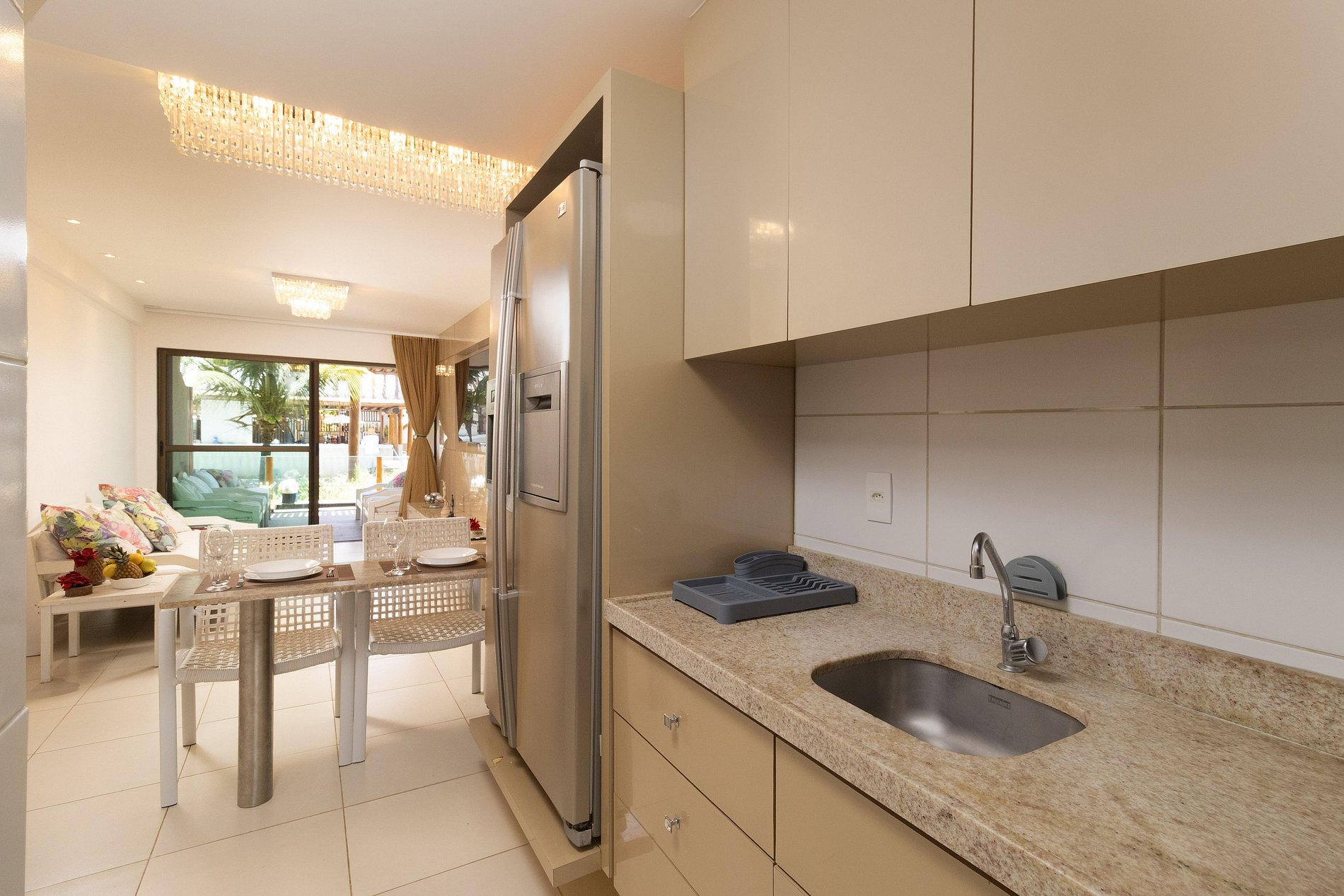 Cozinha completa com fogão, geladeira e eletrodomésticos