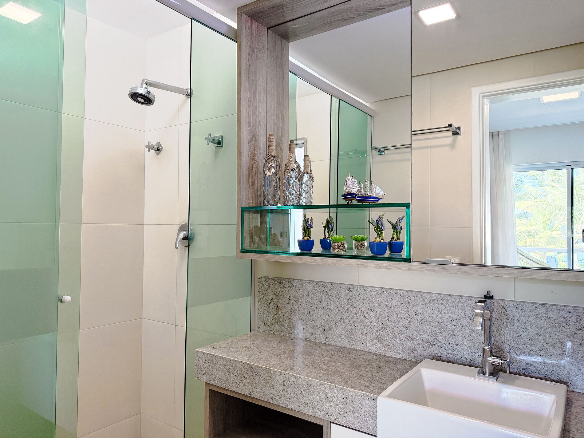 Na área externa, destaque para o deck com piscina privativa e churrasqueira, perfeito para dias relaxantes depois da praia.