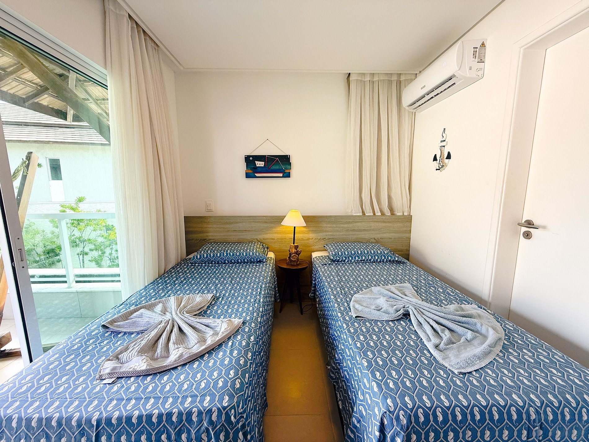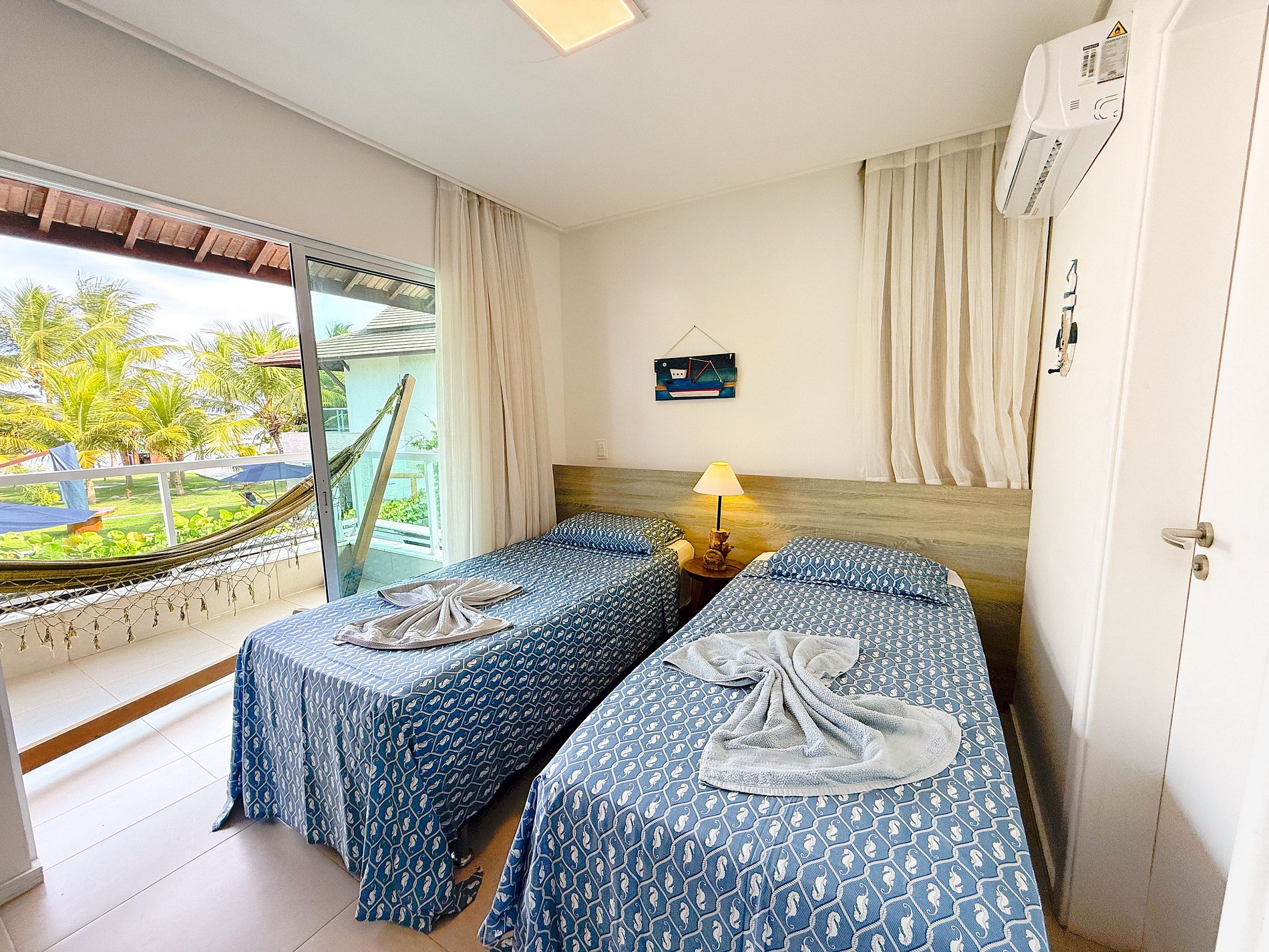 2 camas de solteiro · Varanda com vista para a piscina
