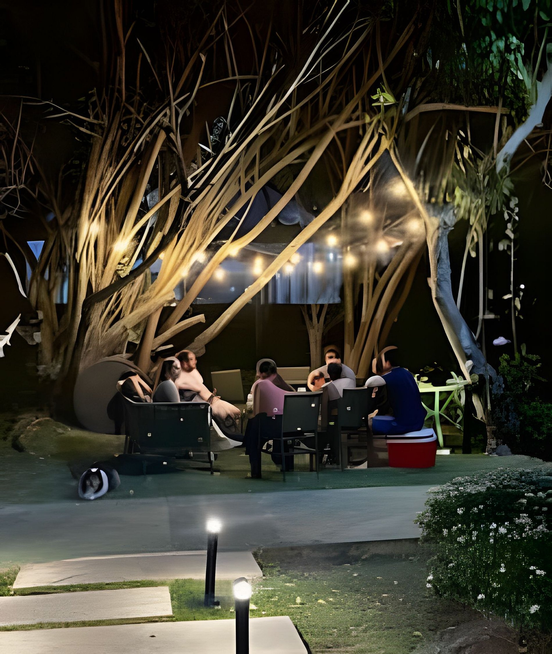 Vocês vão se apaixonar. - caminho iluminado com lâmpadas retrô nas árvores
