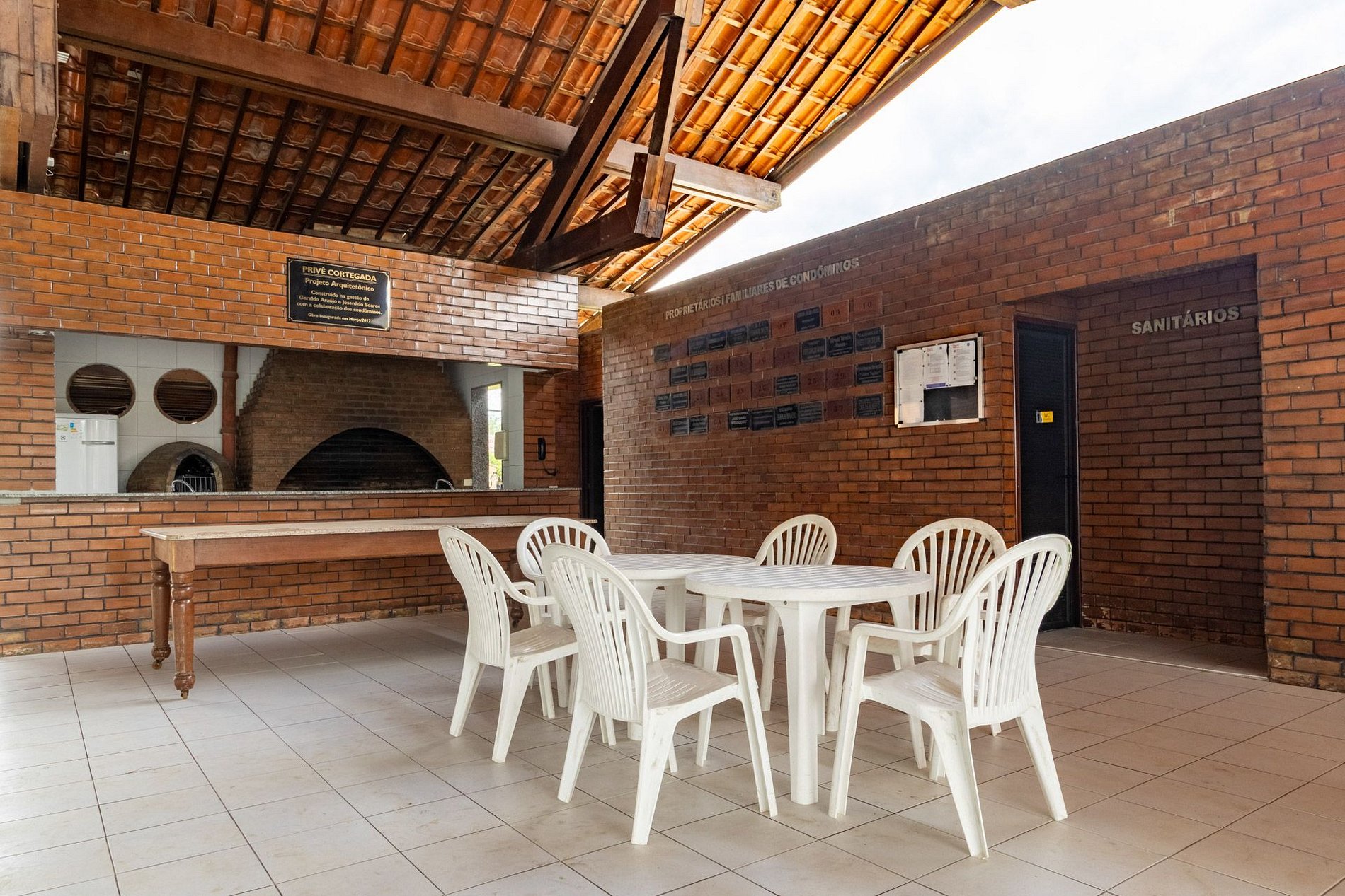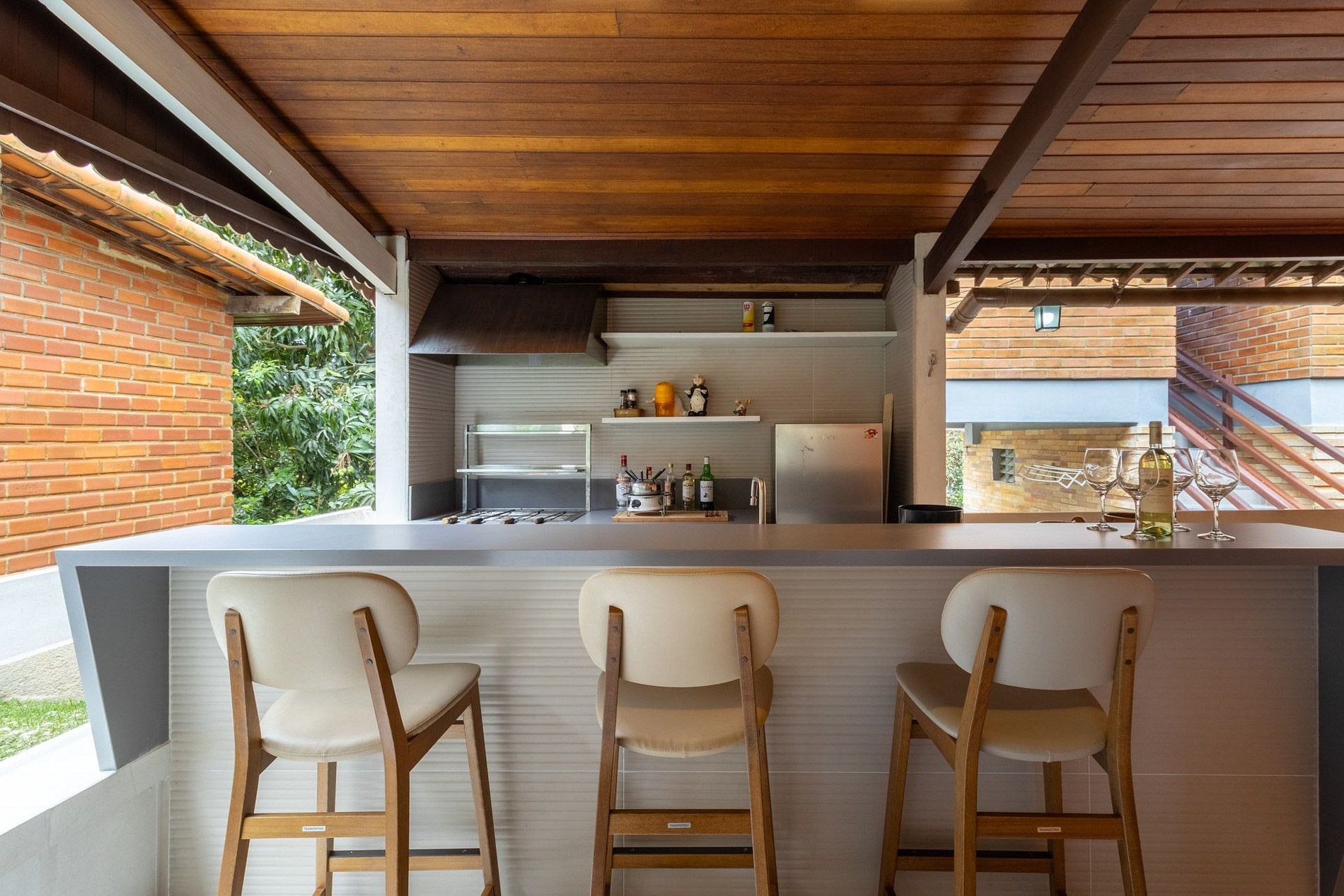A área externa possui uma ilha goumert para você preparar o churrasco e demais receitas com vista para a mesa geral!