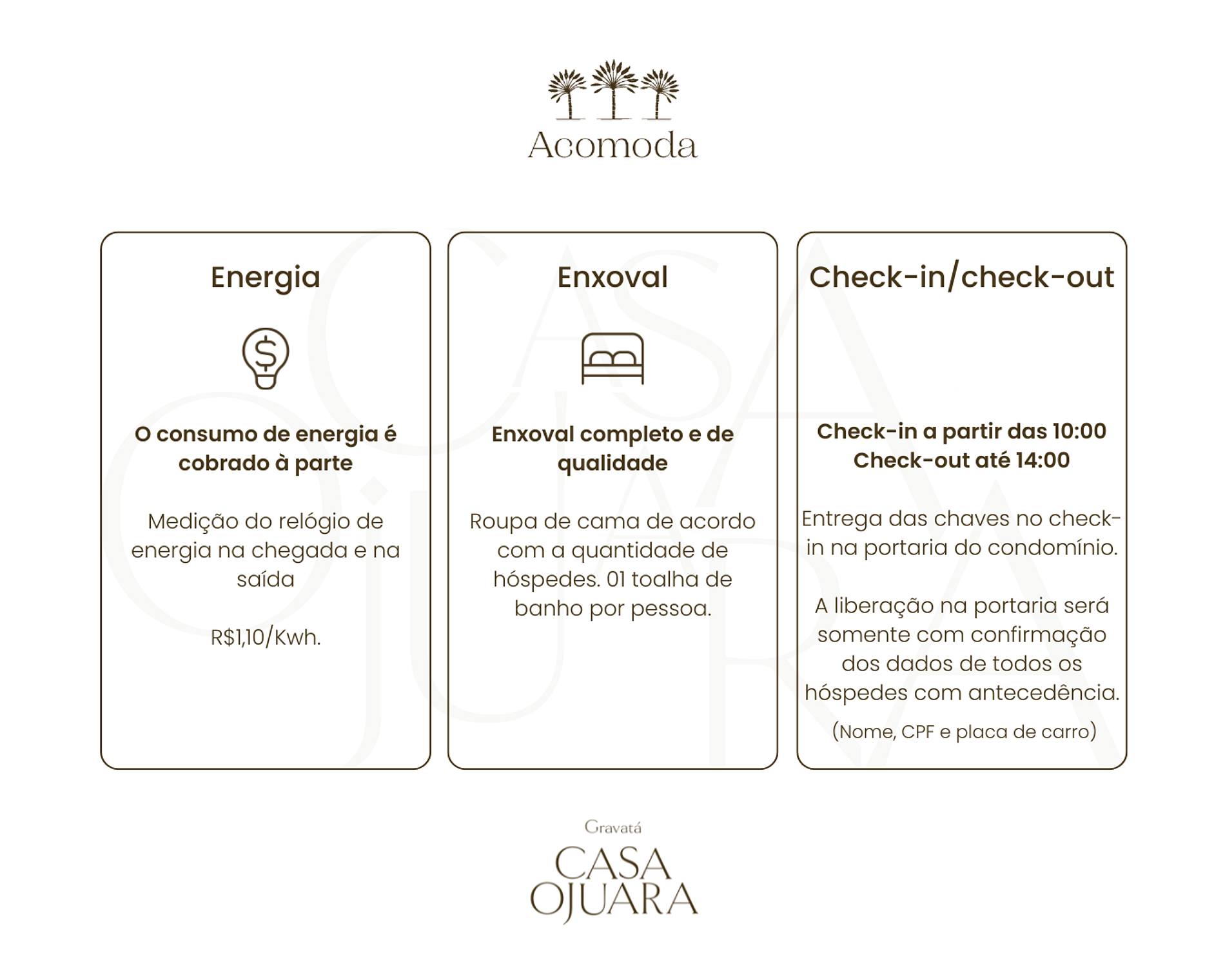Para garantir a organização e a entrada dos próximos hóspedes, atrasos superiores a 1 hora após o horário de check-out resultarão em multa de R$ 200,00.